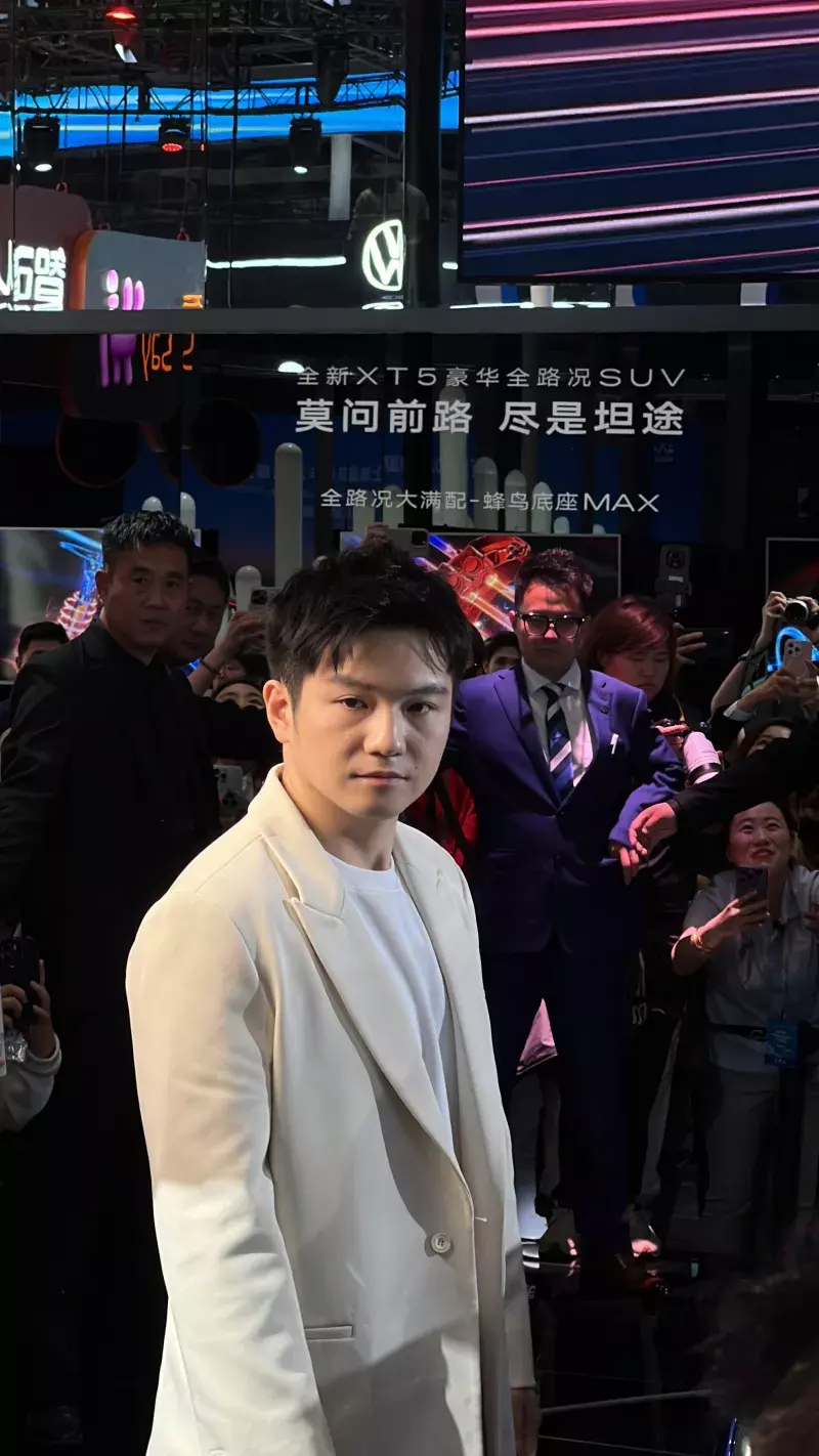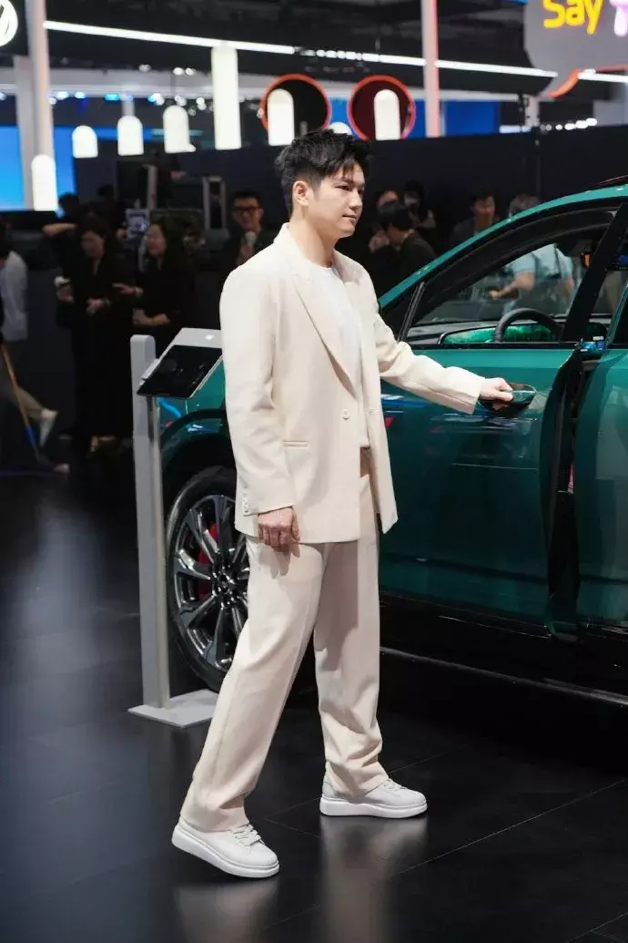 樊振东孑然白色西装跨界亮相上海车展,体育与营业会通引热议!