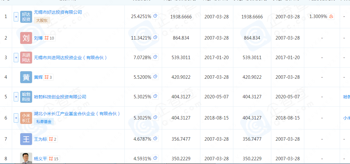 为止当今,好达电子共有34名鼓舞,其中不乏公司董事总司理刘博、副总司理王为标、前董事黄辉等当然东谈主,但也有小米产投旗下的湖北小米长江产业基金结伙企业(有限结伙)、拓中股份(002346)和爱建集团(600643)旗下的苏民投君信(上海)产业升级与科技革命股权投资结伙企业(有限结伙)等私募基金。
