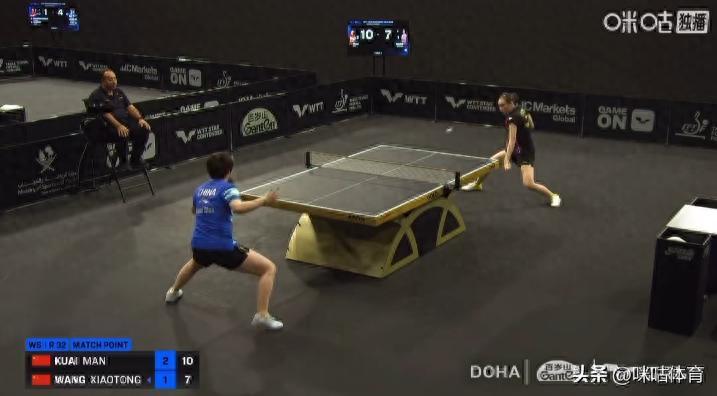 1 月 16 昼夜深,WTT 多哈球星挑战赛女单 1/16 决赛(32 进 16)献艺国乒内战,天下排行第 4 的头号种子蒯曼以3-1(11-2、5-11、11-9、11-7) 的比分顺服队友王晓彤,得胜晋级 16 强。下一轮,她将迎战日本削球手佐藤瞳,这对她的技艺全面性将是紧要查验。